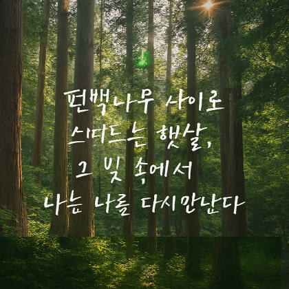 편백나무 사이로 스며드는 햇살, 그 빛 속에서 우리는 나를 다시 만납니다.