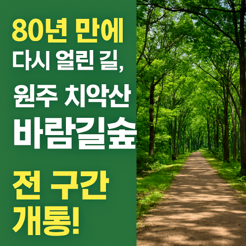 2025년, 원주 시민들에게 반가운 소식이 전해졌습니다. 바로 국내 최장 도시숲 트레킹 코스, 치악산 바람길숲이 전 구간 개통되었다는 소식입니다. 이 길은 80년 전 철길이었던 공간이 자연과 사람을 잇는 도심 속 생태문화축으로 재탄생한 상징적인 프로젝트입니다.